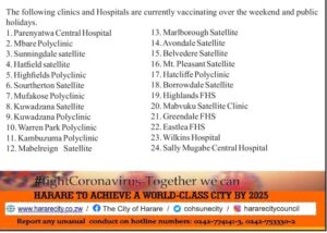 “The City of Harare would like to notify residents that it has gradually started the decentralisation of the #Covid-19 vaccination campaign to enable residents to access the service.” HCC said in a statement.