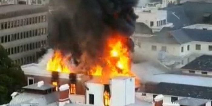 The fire broke out in the early morning and authorities said the sprinkler system appeared to have been tampered with and so did not work. By afternoon, firefighters were still trying to contain the blaze in one of the several buildings that make up the parliament complex in the legislative capital, Cape Town.