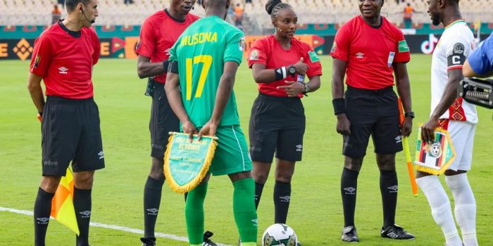 Mukansanga walked out onto the pitch holding the match ball accompanied by three male match officials with Zimbabwe going on to win the game 2-1.