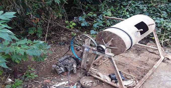Two laboratories that were processing gold-bearing materials were dismantled and numerous mining equipment, implements, and a vehicle were seized.