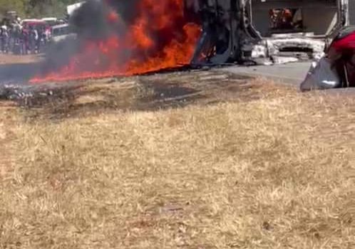 “We can confirm the fire accident involving a bus this afternoon (yesterday) where the bus was reduced to a shell, with passengers losing their luggage.